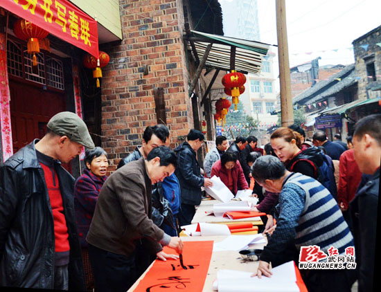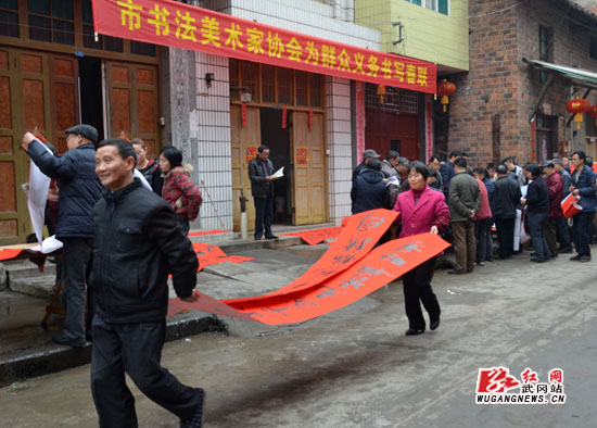 红网武冈(杨运焰 摄影/报道)2月4日,武冈市书法美术家协会组织会员来到回龙街,义务为居民书写春联,受到了居民的欢迎。