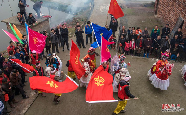 “走马灯”——头堂乡石羊桥每逢庆典或节日都会表演传统节目走马灯。去年,“武冈石羊走马灯”成功申报为湖南省非物质文化遗产保护项目。(曾晓红 摄)