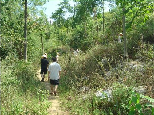 市公路局抗旱工作组与村镇干部等人到该村后山腰察看一饮水源
