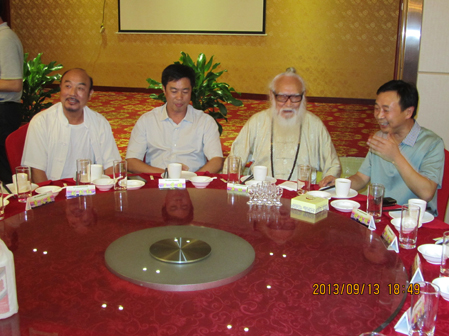 左起:岩鹰王刘烈红、武冈市副市长毛学雄、武术家朱鹤亭、武冈市委副书记夏贤钦在会场