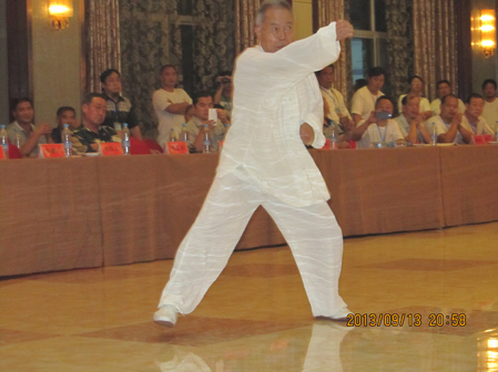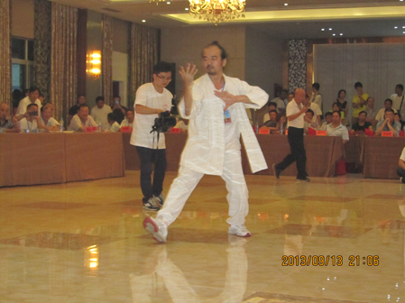9月13日晚8点,武冈大酒店披上了节日的盛装,五楼大会厅内灯火辉煌,随着中国民间武术家联合会主席、中国武林书画家协会主席朱鹤亭大师的宣布,第八届全国武林大会拉开了帷幕。少林、武当、形意、太极、八卦、大成、崂山、崆峒等各大门派的近百名精英弟子登台亮相,勃勃的英姿和精湛的武术表演令人大开眼界,博得了观众们一阵又一阵热烈的掌声喝彩声。