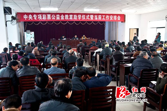 红网武冈12月10日讯(刘长焱 摄影/报道)12月6日下午,武冈市教育局在三楼会议室举行了中央专项彩票公益金教育助学仪式。根据湖南省教育厅《关于开展2013年中央专项彩票公益金教育助学项目的紧急通知》的要求,经全市各教育单位摸底推荐,教育局党委审核研究决定,并公示,对家庭经济特别困难的在职在岗中小学(含中职)教师钟廷勇等71人 (励耕计划)、对家庭经济特别困难的幼儿教师姜新学等11人(润雨计划)每人资助10000元,对226名品学兼优、家庭经济特别困难的高中学生(滋蕙计划)给予一定的经济资助。本次教育助学活动共发放救助资金127. 2万元。