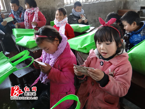 红网武冈1月6日讯(刘传斌 左懋魏 张二健)1月4日,邓元泰镇华塘小学的孩子们领到了大学生志愿者送来的围巾和多种学习用品,特别高兴。
