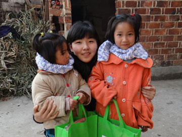 当天上午,中南林科大张慧等5名大学生为该校96名孩子带来了新年礼物。有铅笔、文具盒、笔记本、新华字典、图书等,价值3000多元。“哥哥、姐姐”为孩子们系上漂亮的围巾,送上写着新年祝福的贺卡,还领着孩子们做游戏。很多家长闻讯赶来,对志愿者竖起大拇指,连连称赞,整个校园充满温馨。随后,志愿者还走访了贫困留守儿童家庭,亲自把爱心袋、书包等物品送到孩子手中。