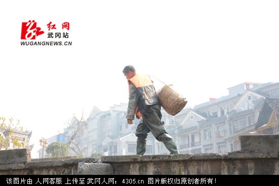 红网武冈1月6日讯(杨运焰)元月2日,两名环卫工人正在武冈市区穿城河里拾捡垃圾。