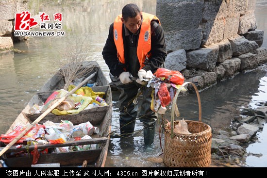 为了城市的清洁,他们两人承担着流经市区的资水和穿城河两条河的垃圾清理任务,每天划着小船,从水里将市民丢弃的垃圾拾捡起来,集中到船上,然后用背篓背到岸上的垃圾转运站。
