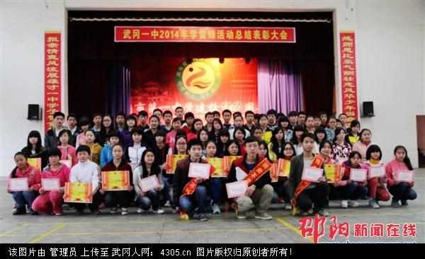 邵阳新闻在线讯(通讯员 王征平 柳秀勇)3月31日,武冈一中2014年“学雷锋”活动总结表彰大会在该校大礼堂隆重举行,会议总结了本学期以来该校师生“学雷锋”活动的开展情况,表彰了在活动中涌现出的先进班级和先进个人。