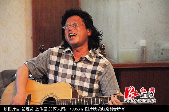 0409-02流浪诗人曾德旷在弹唱自己写的歌曲(周剑平)