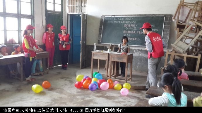 助学物资卸载完毕,义工们在教室和学生们做游戏,然后叫每一个学生到教室讲台上做自我介绍并说出自己的爱好与梦想,大部分学生长大后的梦想都是当作家、艺术家、科学家及画家,也有的想当警察、医生和飞行员,当然,也有学生希望长大后可以当老师。