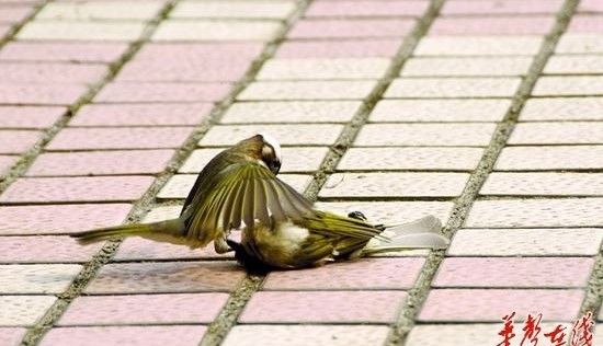 记者请湖南省环保联合会理事长何建军辨认,这两只鸟学名白头鹎,俗称白头翁,一种吃害虫的益鸟。“这分别是雌雄两只白头翁,死去的是雌鸟。”