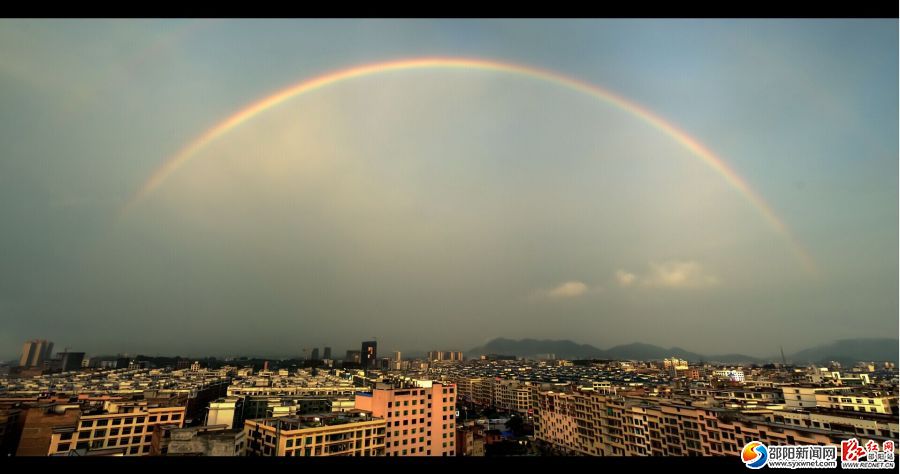 邵阳新闻网讯(通讯员 黄渊平 肖鸣学) 7月25日19时许,受今年第10号台风“麦德姆”影响,武冈市在出现短暂暴风雨天气后,城市上空出现一道难得一见的彩虹。