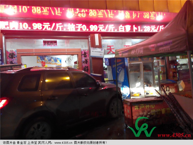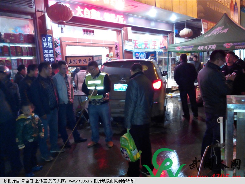 据现场目击者称,当天20时20分,一辆湘E7W×××轿车在新广场春园路口由西向东行驶过程中和另外一辆黑色轿车发生刮蹭,然后又撞上路中央行驶的一台摩托车后直接冲上一超市大门口,轿车撞上超市门口摆放的展示柜后才停下来。据现场目击者称,此次事故造成摩托车司机和超市门口的一名顾客受伤。