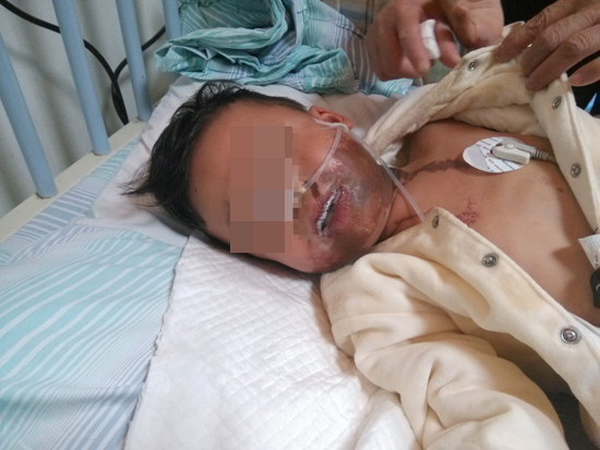 昨晚,医院消化科的病床上,小泽在药物的作用下已陷入昏睡,但不时被剧烈的病痛所惊醒,发出痛苦的哭闹声。他整个下半脸部都是烧灼的痕迹,身上也有好几条灼痕。护士来打针时,被抱起的小泽几次想把脸往妈妈肩膀上靠,但怕触碰到伤口造成恶化,易女士只能轻轻将他推开。