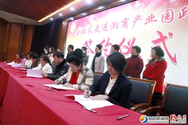1月23日,邵阳市妇联、市女企业家协会组织70多名女企业家走进市区宝庆工业集中区和邵东湘商产业园,现场体验标准化厂房,参观入园企业,倡导巾帼共建湘商产业园;与市直各职能部门代表、各银行代表展开座谈,寻求合作多赢,并现场签约,达成投资、融资意向近30亿元。刘事青、周国利、肖益林、辛建平、伍邵华等市领导出席座谈会。