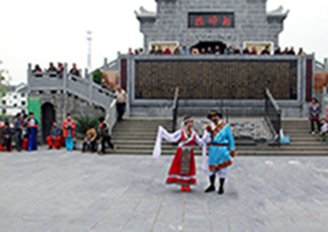 表演唱:《逛新城》演员们正在高沙祖师桥头表演。