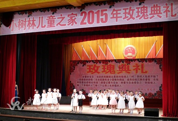 当天,小树林儿童之家为30位大班的小朋友举办了隆重的毕业仪式——“玫瑰典礼”。活动现场,30位小朋友在老师的带领下,手持玫瑰花穿过玫瑰之门,在全体家长和老师的鼓励声中走过红地毯,并一同欣赏了全体师生表演的精彩节目。此次活动,让即将跨入小学门槛的幼儿在老师和父母的掌声中获得了爱与认同,他们所吸取的爱、支持和力量,将促使他们健康快乐成长。