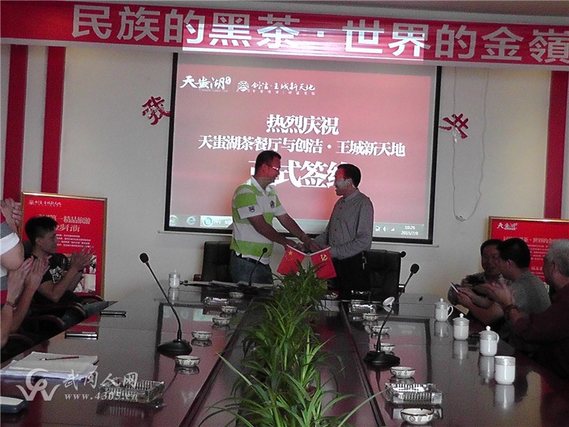 2015年7月9日上午,在创洁.王城新天地三楼会议室,国内知名餐饮品牌天蚩湖茶餐厅与创洁举行了隆重的签约仪式。