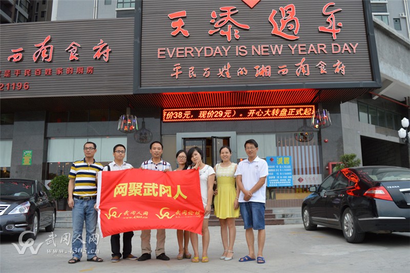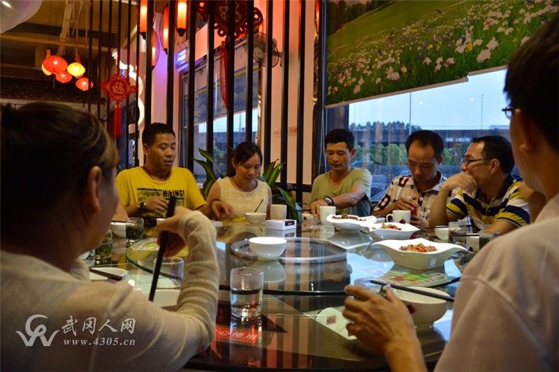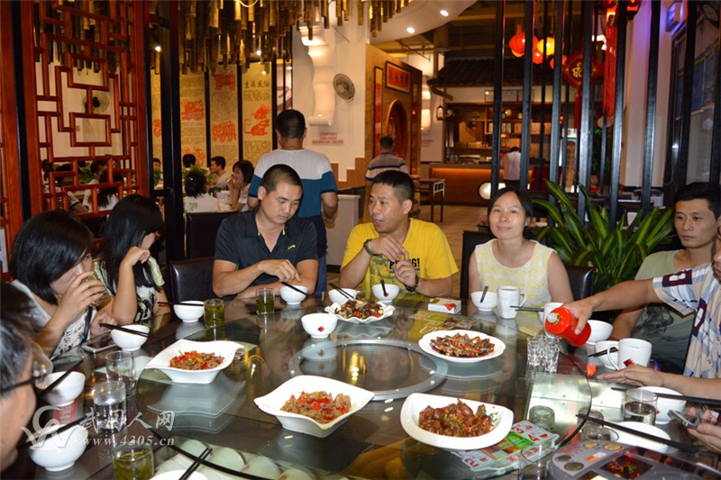 7月13日晚,武冈人网网友相聚松岗“天添过年”,痛快地体验了一把家乡人,家乡情,家乡味,家乡年的感觉!消息在微信、QQ群里一发布,就被各路武冈网友追问地址和电话,都表示要来吃武冈菜。席间,欢笑声不断,真可算得上是过年。参与此次聚会的有老夏、小鱼、喻总、黄总、小杨、玲子、李果、会雄、老陈等十余名网友。