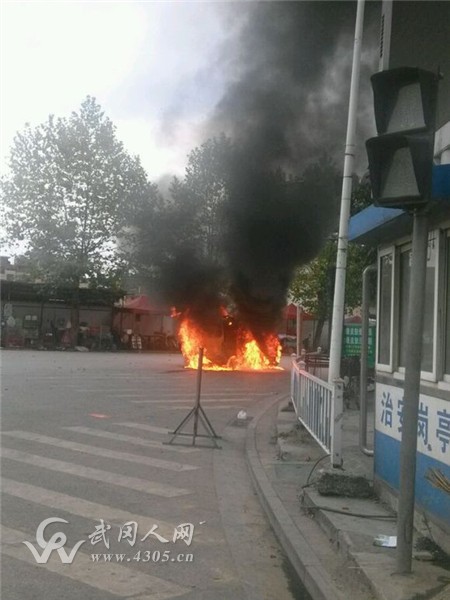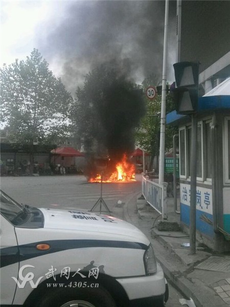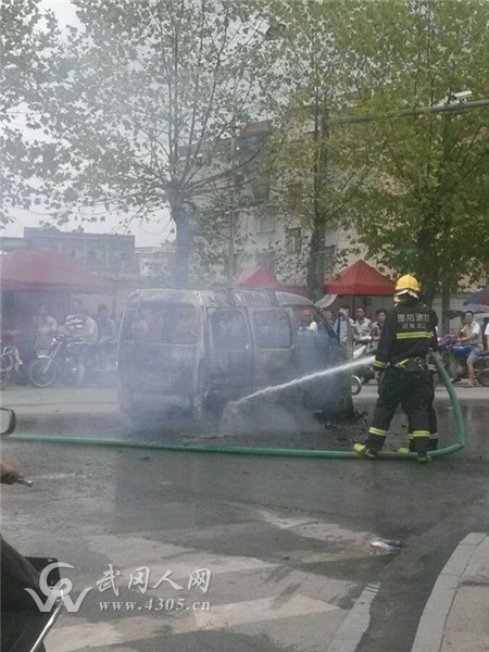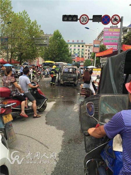 今天下午四点半左右,武冈步步高门口一面包车自燃起火,场面惨啊!