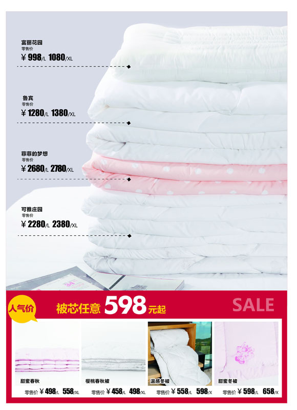 多喜爱家纺股份有限公司,成立于1999年。注册品牌为“Dohia多喜爱”。该公司主要从事以套件类产品(含枕套、被套、床单、床笠等)、芯类产品(含枕芯、被芯)为主的家纺用品的研发设计、委托加工的组织、品牌推广、渠道建设和销售等业务,并一直致力于新材料面料的应用研发和生产业务;公司营销中心设在湖南长沙,开发中心及生产企业等在广东省深圳市、东莞市。公司拥有销售网点千余家,遍及全国各地,是行业内发展速度最快的企业之一。