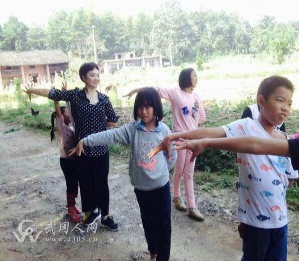 她叫王贵香,一行人员在司马冲山背村找到的孩子,腼腆倔强自尊心超强,她跳舞时都不许偷拍,完事带舒琳们去山上采蘑菇,帮杨子墨拨开带刺的树枝;由刚开始躲着,到慢慢的融入舞蹈课和互动游戏当中,时间一下就拉近了距离。游戏中,满村遍野地追着孩子跑,大汗淋漓;走的时候孩子们拉勾保证,一定练字看书好好学习,将来回报社会。