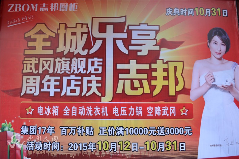 志邦厨柜武冈旗舰店周年店庆,集团17年,百万补贴,正价满10000元送3000元。另外,冰箱、洗衣机、电压力锅等幸运抽奖礼品已空降武冈。活动时间从2015年10月12日到10月31日。活动地址是武冈新建材城邮政银行隔壁武冈志邦厨柜,更多活动信息请电话咨询:0739-4275695。