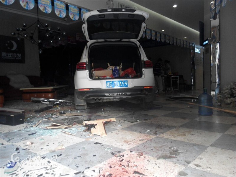 内容导读:10月23日中午,武冈一嘉一宾馆附近发生一起奇葩交通意外,一辆小车在撞电动车再次直冲进晚安家居店里。后交警赶到,现正在处理相关事宜。