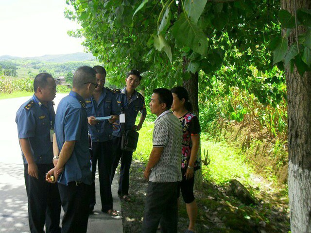 湾头桥超限检测站工作人员正在发放治超宣传单