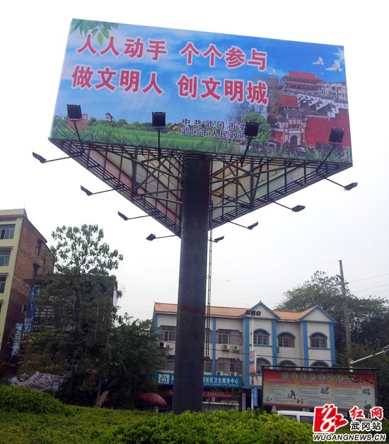 今年,市委、市政府确定创建“省级文明城市”的战略目标,卓有成效地开展了城乡卫生集中整治和城市管理综合整治。为营造浓厚创建氛围,我市精心设计制做了一批公益广告,其中在画面上融入了“武冈城墙”、“奎文阁”、“武冈文庙”等浓郁的武冈王城特色,在宣传用语上充分体现了文明温馨、文雅亲和的特点,分别布置安装在城区主干道。此外,所有个乡镇、街道办事处也分别按要求在其辖区的交通要道、路口、社区院落设置文明创建的公益广告、全民健康宣教橱窗。