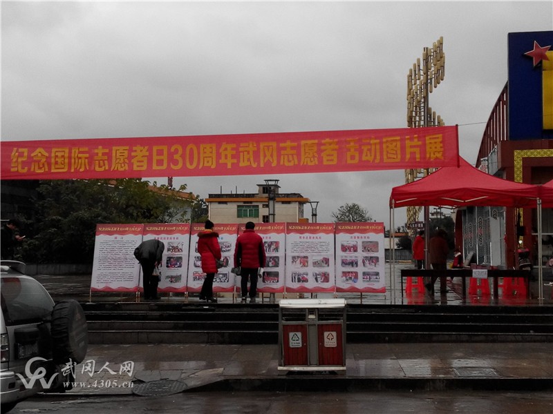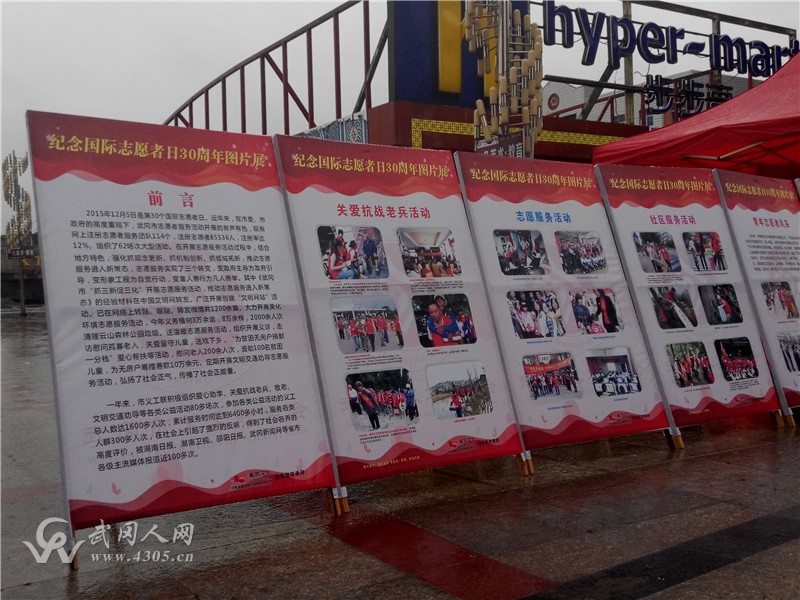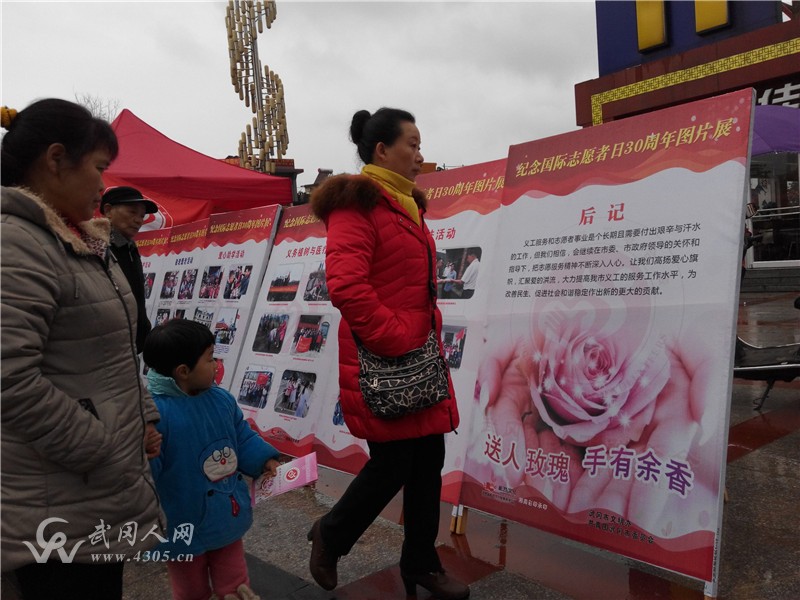 2015年12月5日,武冈宣风楼,纪念12.5国际志愿者日30周年武冈志愿者活动图片展正在举行。