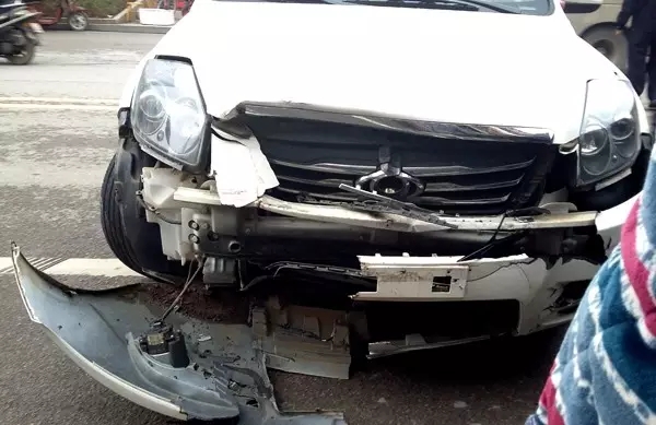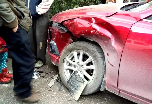 据微友提供的现场图片显示,停在路边的红色小车前轮和车头被撞歪,右侧被撞上了绿化带,肇事车的车头也损伤严重,现场交通一度堵塞。因交警赶到后,肇事司机并未露面,因此有人怀疑此次车祸为酒驾引起。
