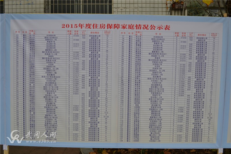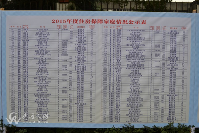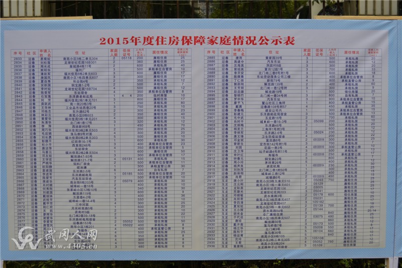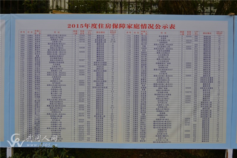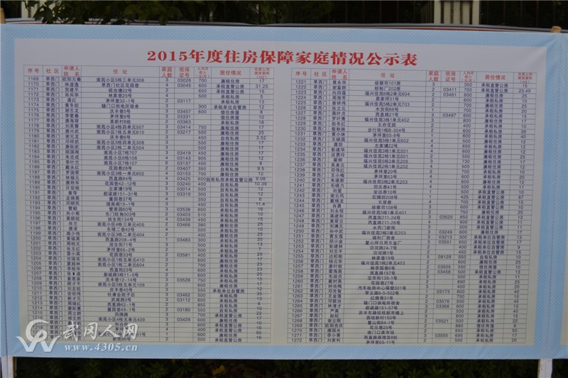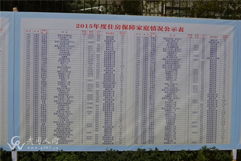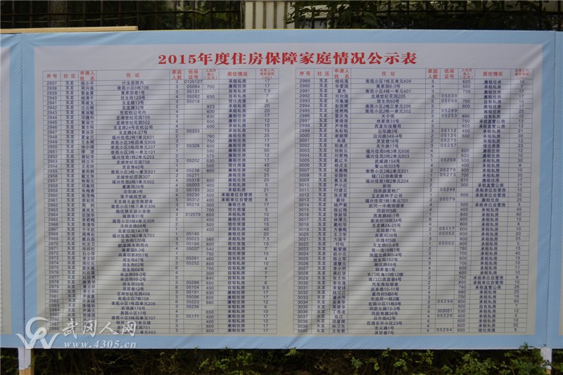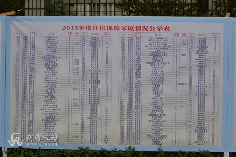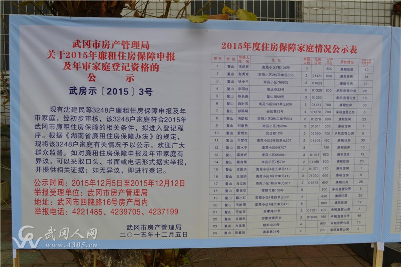 现有沈建民等3248户廉租住房保阵申报及年审家庭,经初步审核,该3248户家庭符合2015年武冈市廉租住房保阵的相关条件,拟进入登记程序。根据《湖南省廉租住房保障办法》的规定,现将该3248户家庭有关情况予以公示,欢迎广大群众监督。如对廉租住房保障申报及年审家庭有异议,可以采取口头、书面或电话形式据实举报,并提供相关证据;如无异议,即进行登记。