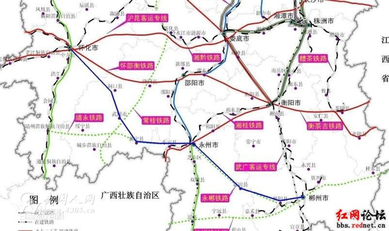 兴永郴铁路(兴永郴快铁):包括兴靖铁路段和靖永郴铁路段,属于兴永郴赣铁路),西起贵州省兴义,东至湖南郴州。连接湖南与贵州,这条铁路的修建可以带动途径地方经济发展。湘黔两省都非常重视贵州兴义至湖南郴州铁路,其中贵州省已将兴义至独山段列为“十三五”开工项目。永州至兴义铁路(独山县至兴义段)2017年开工建设。项目建成后将成为中部地区东西方向大通道。目前已纳入湖南六纵六横铁路网。