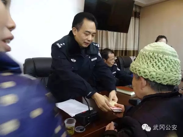 武冈市公安局局长李跃平将追回的钱款归还给群众