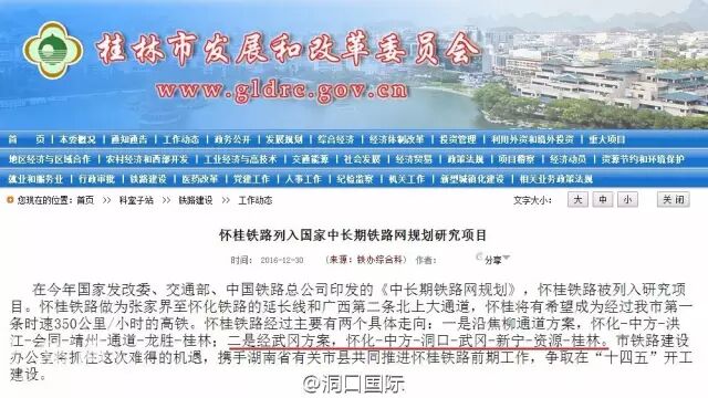 据网上公布的一份《怀桂铁路列入国家中长期铁路网规划研究项目》文件指出:在今年国家发改委、交通部、中国铁路总公司印发的《中长期铁路网规划》,怀桂铁路被列入研究项目。