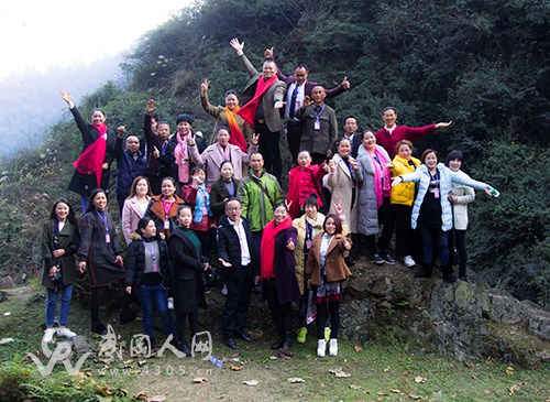 到达篝火晚会现场,举行登山活动前大家留影。