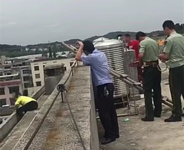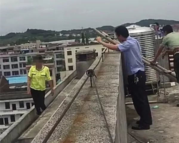 现场情况十分紧张,为防止该女子有过激行为造成坠楼,民警与轻生女子进行交谈,并让其小孩上前叫妈妈,分散其注意力。消防官兵则系好安全带,伺机从其背后靠近,一把抱住该女子,派出所村辅警覃向见状,纵身跳到阳台上,协助消防官兵将女子控制好,以防止发生意外。然后,民警、消防官兵齐心协力将女子拽回楼顶天面。