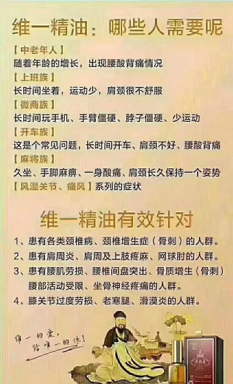 是一款纯植物精油,独家配方,由50种中草药浸泡而成,包括藏红花、人参、远志、木香、独活、天麻、羌活等等。