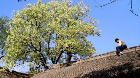槐树的花期不长,花开半月就会凋萎。一夜风雨之后,树下撒了满满的厚厚的一圈儿,颜色变得有些淡黄,但那是多么壮观的凋落啊。我们不忍心破坏这天然的褥子,只远远地围拢来观看,有的同学大做深呼吸,说舍不得这段天香无端耗散了。还是女生懂得怜香惜玉,她们用手帕包裹着花儿,做成香囊的模样放在课桌抽屉里,放在床头,夹在书本里。男生也有小心翼翼地把落花用玻璃瓶装着的,在盖子上戳几个小孔让花香从孔里溢出,美其名曰“天然花瓶”。成熟点的则把这花瓶悄悄赠送给自己心仪的女生,以期赢得女生的青睐。