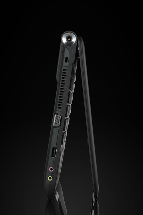 ▲ 机身的左侧接口依次是:电源接口、主散热口、VGA接口、USB接口、耳机和麦克风孔。