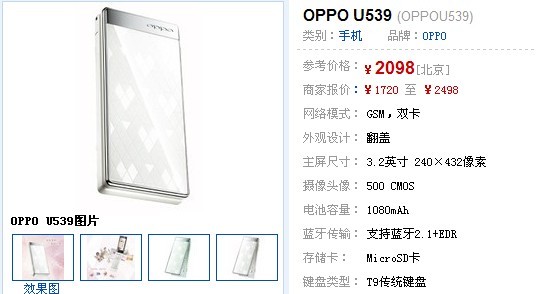 OPPO U539 直销底价1700 实体店价 2200 让您省500