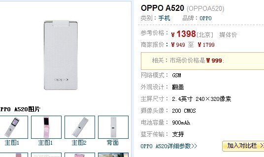 OPPO A520 直销底价1000 实体店价 1400 让您省400