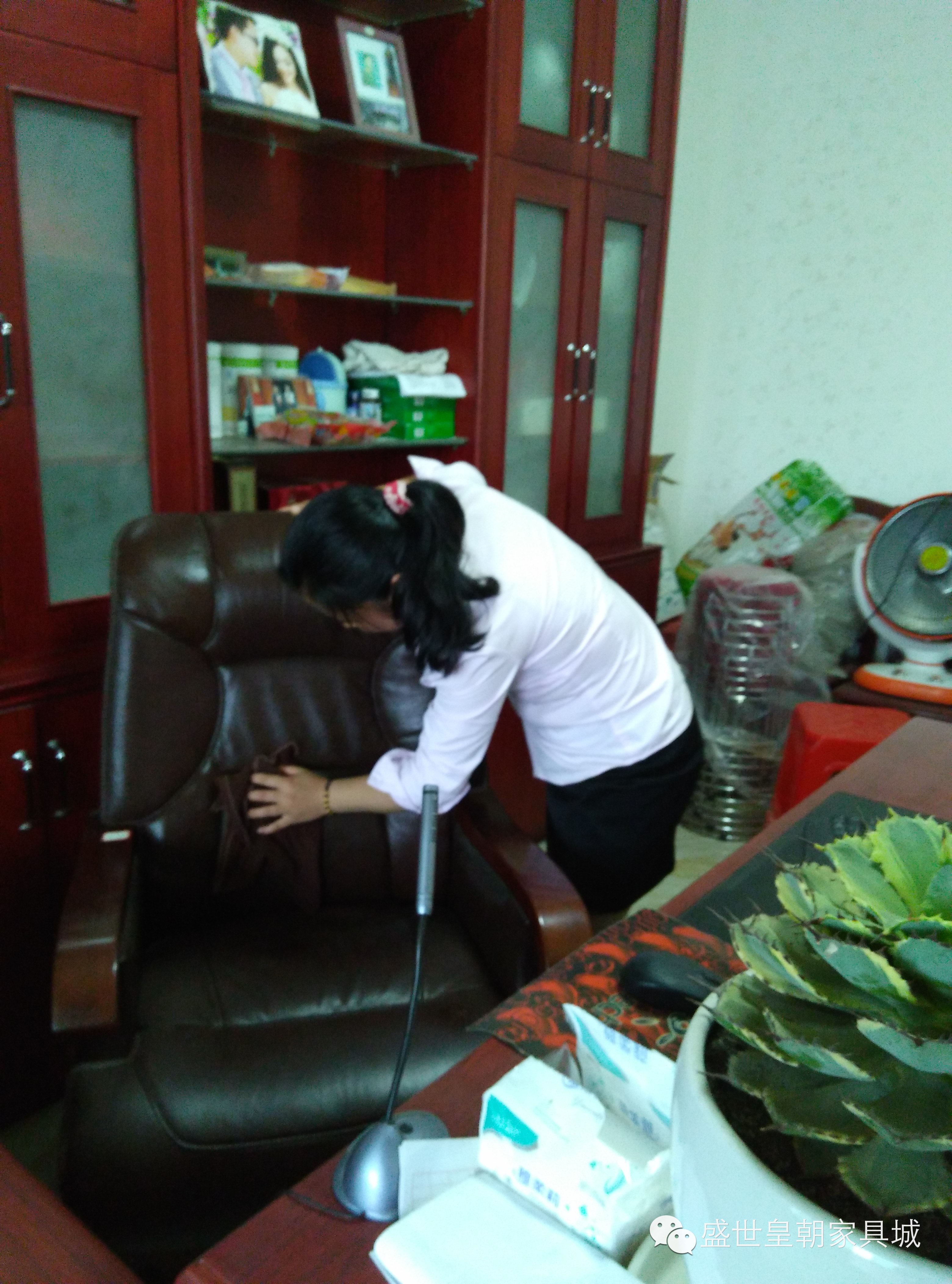 上图为5月4日我店员工在水果批发市场7栋A单元为客户做办公大班椅的清洁保养。