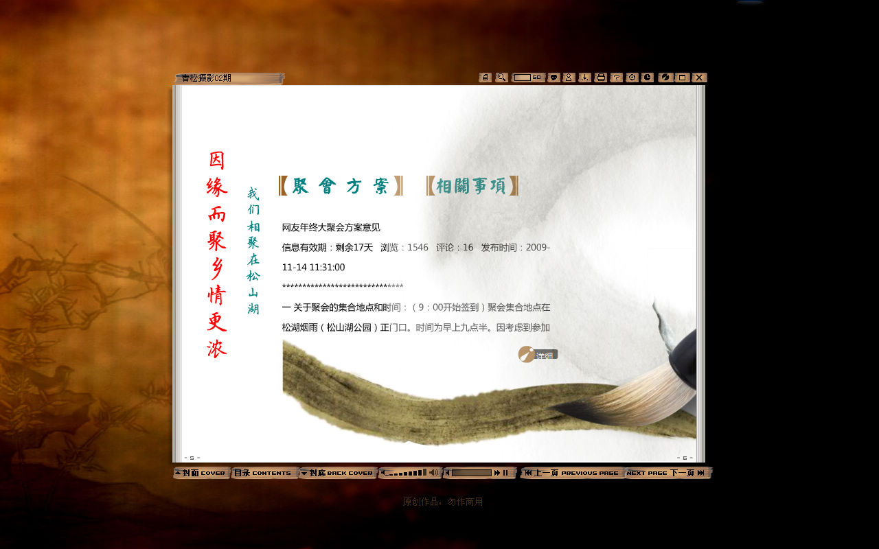 本期内容主要是把青松老师及其他朋友的聚会照片制作成电子杂志形式,主要分成以下几方面内容: