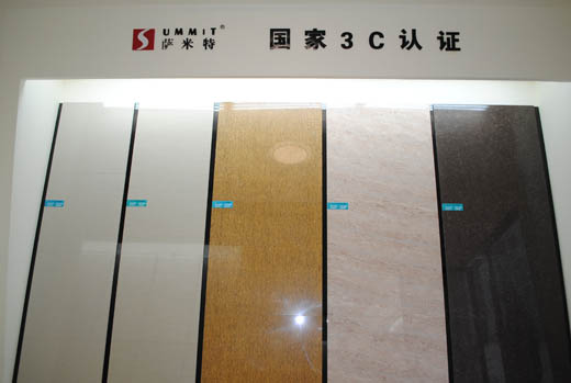 萨米特以极致精品为产品基准,严格遵守ISO9001:2000质量管理体系和ISO14001:2004环境管理体系标准,并执行比国家质量标准和欧洲质量标准更高的企业内控标准,顶尖的生产技术工艺,凝聚非凡的创意与商业智慧,不遗余力地整合人文、艺术以及科技魅力于产品研发之中,极度苛刻的原材料生态品质,安全、环保、人性化的生产环境,全程无尘化绿色生产监控,源源不断地打造极致的建陶产品,全面覆盖从165×165mm至1200×1800mm不同规格的600多个花色精品,产品种类包括了各类高档抛光砖、内墙砖、雅光砖、艺术拼花等,实现了品质、技术、艺术、生态的实质性融合,成功开发出一批又一批领导消费潮流的陶瓷精品。