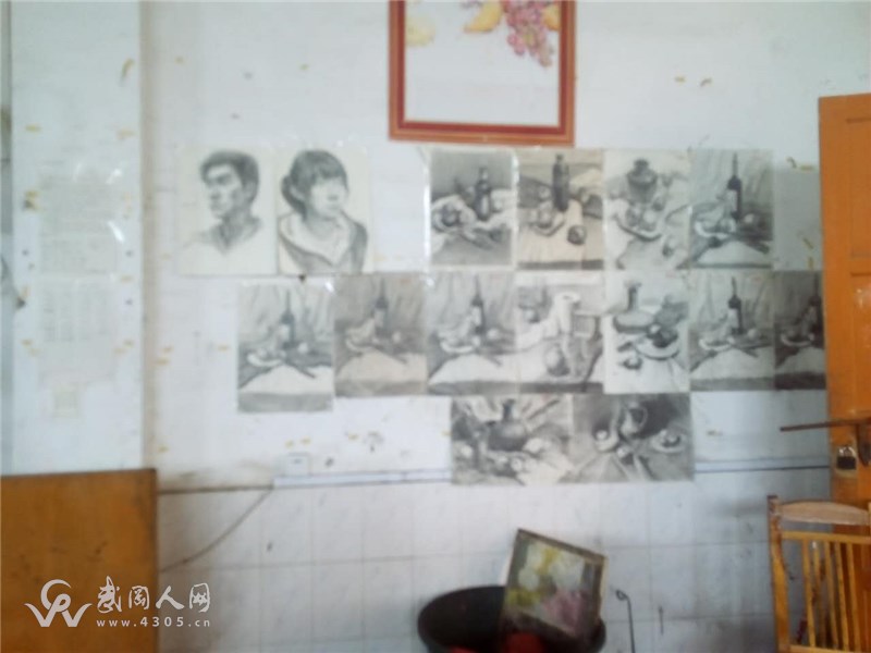 自从变成了画室,干净整洁的场所便零乱不堪了。课桌没有笔直同向的两张,都是随心所欲的摆放。美术课本 、画纸、画笔等等满地都是——连用来临摹的石膏像,都你不瞧我我不理你,显示它们作为艺术雕像的独特骄傲!美术老师从不要求学生要怎么怎么样,学生只要走进这里,完全是凭自己的学识和灵感——刻板的规矩不利于艺术的发现发挥和创造!一个生活习惯循规蹈矩的人走进这里,很可能要得心脏病!这决非危言耸听!