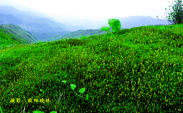 初登地段,路两边小灌木杂草丛生,无树遮档,太阳后射背部,温高难受。往上走,高高松树为我们遮阳纳凉,约二个多小时,我们爬上山顶,这里远看光秃秃一片,近观才知是大片的苔藓区,苔藓绿中带深灰,用手拨开,中间为深橙色,苔藓漫山相接,一大簇一大簇,不近身边,哪知它如此美丽。由于人迹稀少,基本为原生态状态,从爱尚一贯公益宗旨出发,没人躺在苔藓上,只爬在一边亲吻着苔藓,依在旁边留影。12点,队员开始中餐,餐后把所有白色物品,用袋子装在包内带走。